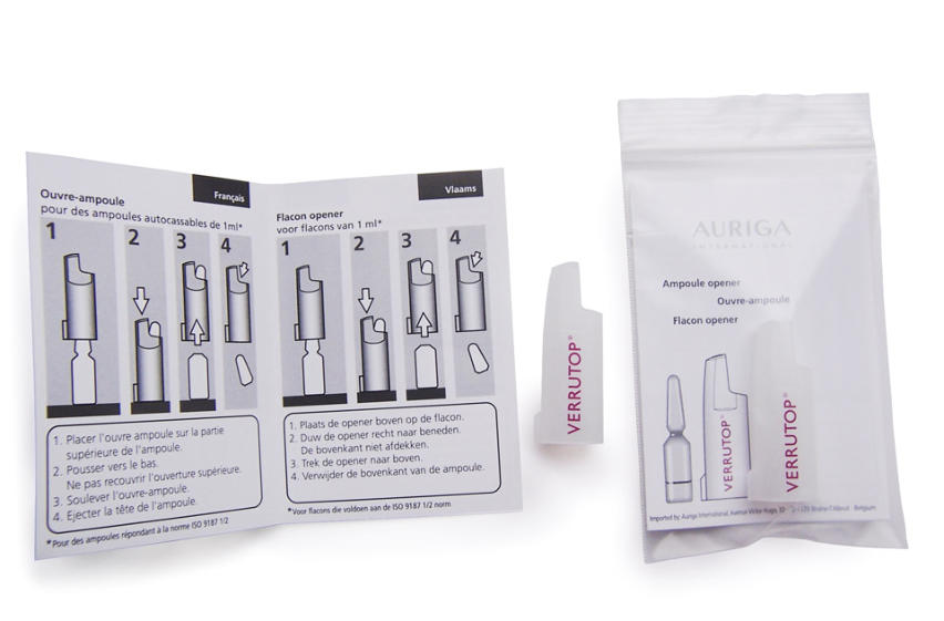 Ampullenöffner mit kundenspezifischer Bedruckung und Gebrauchsanleitung